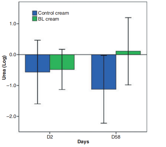 與安慰劑組相比,使用 BL 測試霜治療 2個月的組中,安慰劑中對皮膚的破壞不斷增加,而BL組中的屏障功能效果顯著增強